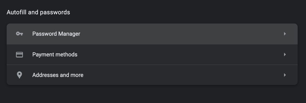 步骤3:这将显示所有与 Chrome 相关的设置。您正在寻找自动填充和密码选项,位于左侧边栏中。