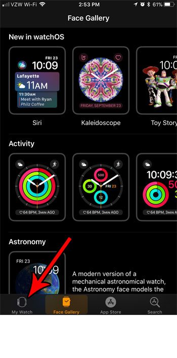 第 2 步:选择我的手表屏幕底部的选项卡。