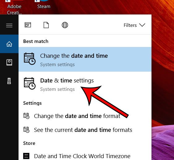 第 1 步:在屏幕左下角的搜索字段中输入“日期和时间”。