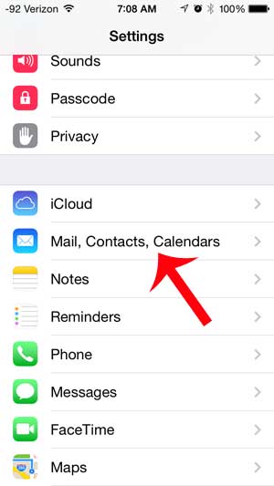 步骤 2:向下滚动并选择邮件、通讯录、日历选项。