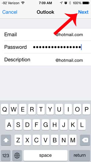 我们的指南在下文中继续提供有关在 iPhone 上设置 Hotmail 帐户的更多信息,包括这些步骤的图片。