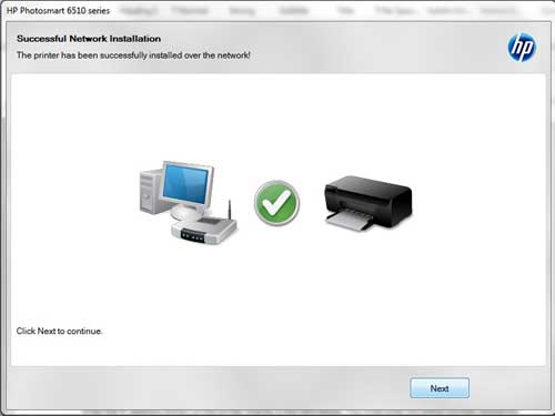 第 13 步:单击下一个通知您已通过网络成功安装打印机后,单击 按钮。