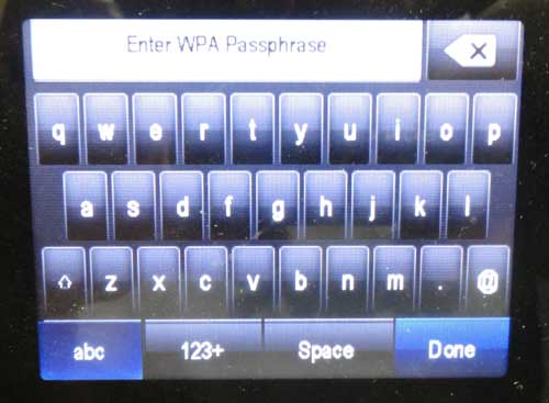 步骤11:输入无线网络密码,然后点击完毕。打印机确认已成功连接到无线网络后,再次触摸无线图标并单击记下显示的 IP 地址。它应该类似于 192.168.x.xx。