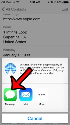 我们的指南在下文中继续提供有关如何在 iPhone 上共享联系人的更多信息,包括这些步骤的图片。