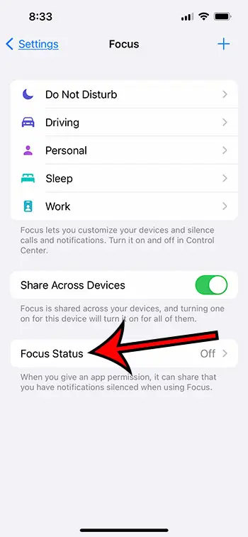 下面我们的指南继续提供有关如何在 iPhone 13 上共享焦点状态的更多信息,包括这些步骤的图片。