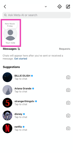 前往 Instagram 私信,点击“您的笔记”,然后搜索歌曲。选择歌曲后,选择要作为注释发布的部分,然后点击“共享”。