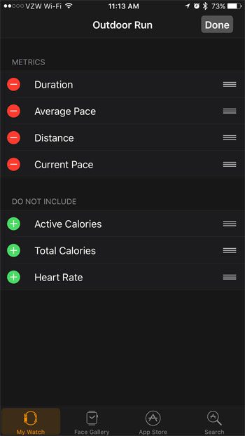 第7步:触摸红色圆圈和消除按钮,然后触摸要添加的每个指标左侧的绿色圆圈。完成后,触摸屏幕右上角的“完成”按钮。