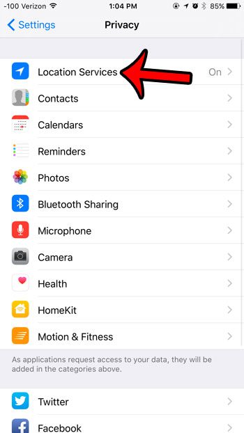 本文中的步骤是在 iOS 9 中的 iPhone 6 Plus 上执行的。启用此选项将导致箭头图标更频繁地显示在屏幕顶部。如果未启用此选项,则仅当您的位置被系统服务以外的其他程序使用时才会显示位置服务符号。