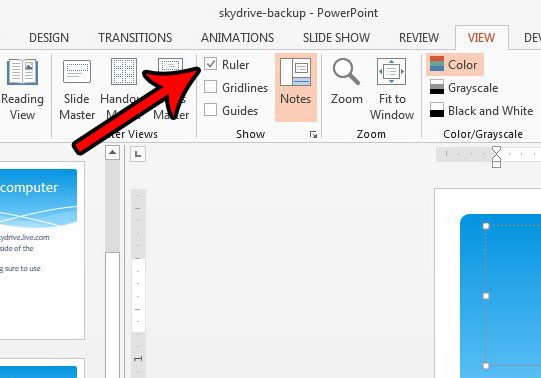 现在您已经知道如何在 Powerpoint 2013 中显示垂直标尺,您可以使用此屏幕元素来帮助您在幻灯片中定位对象。