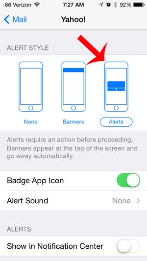 我们的指南在下面继续提供有关如何获取雅虎电子邮件警报的其他信息,包括这些步骤的图片。