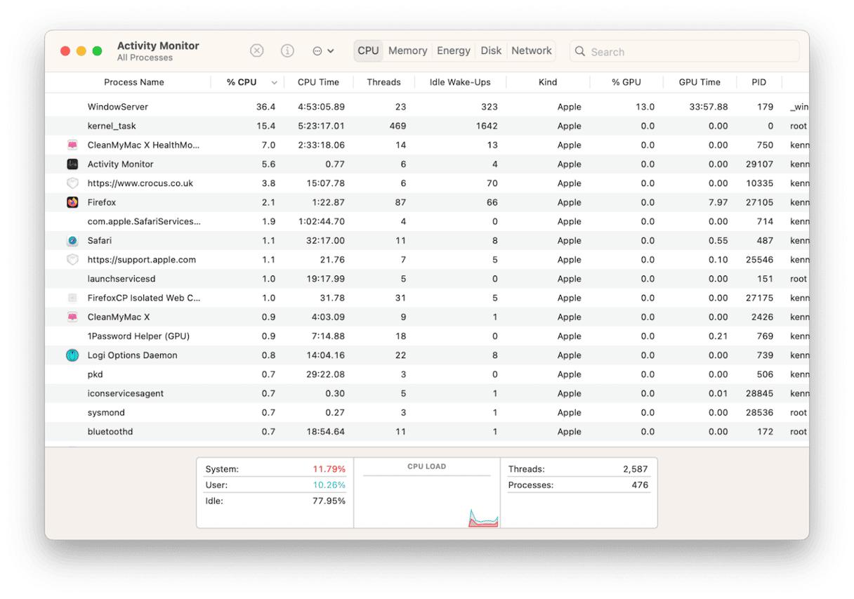 macOS 非常擅长管理资源,但某些进程仍然占用超出其应有份额的资源。检查这是否导致 Mac 速度变慢的一种方法是使用活动监视器: