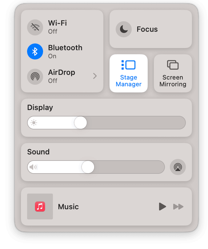 - 单击菜单栏右侧的切换图标以显示控制中心。