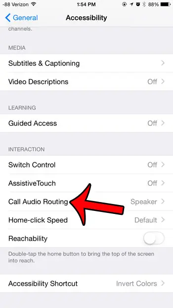 第 4 步:向下滚动并选择呼叫音频路由下的选项相互作用此菜单的部分。