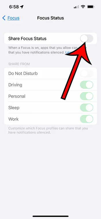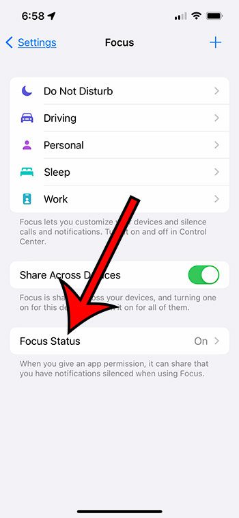 下面我们的指南继续提供有关如何停止在 iPhone 13 上共享焦点状态的更多信息,包括这些步骤的图片。