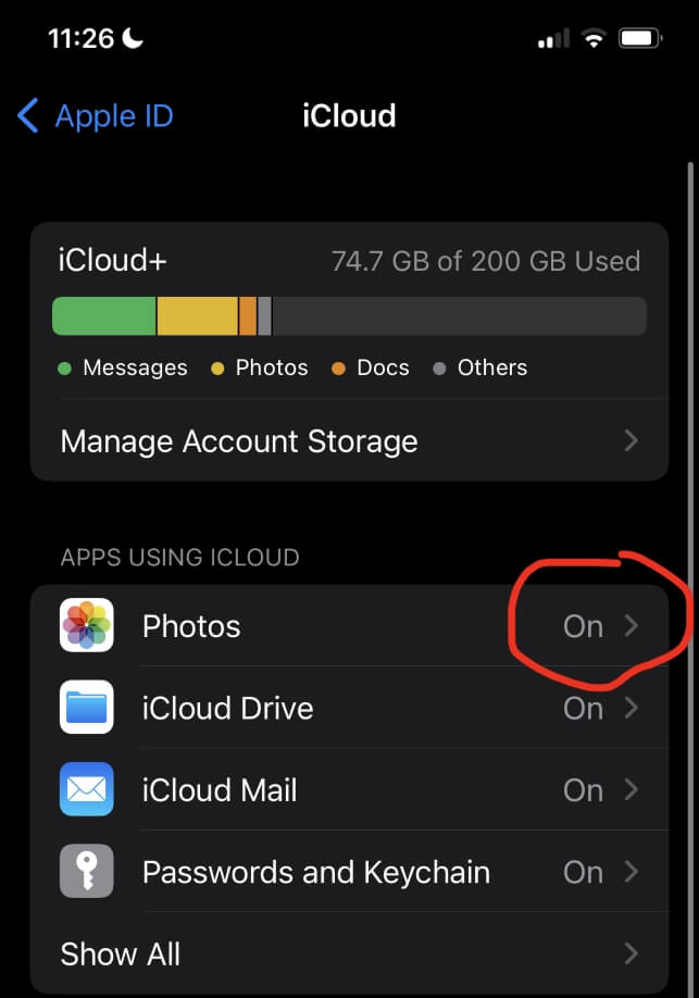 步骤2:在“照片”设置中,确保“iCloud 照片”旁边的切换控件处于打开状态(它将呈绿色)。