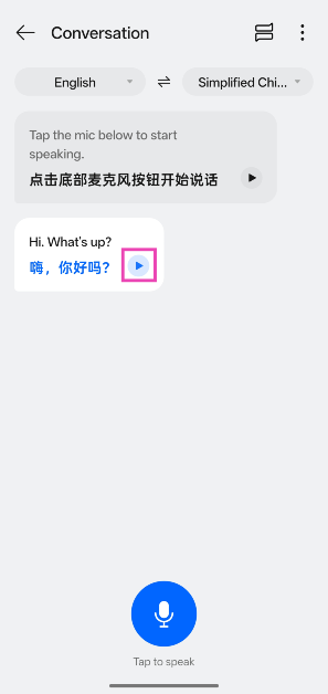 第5步:击中播放图标在翻译后的消息旁边大声播放。