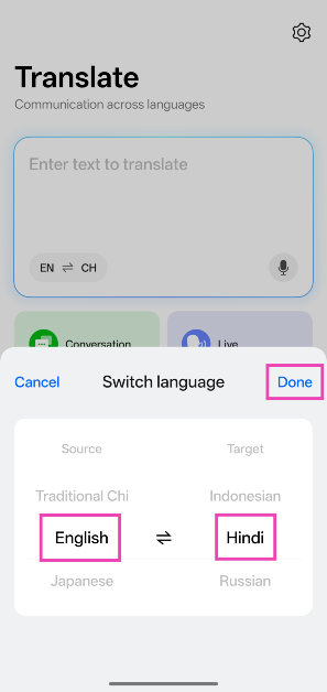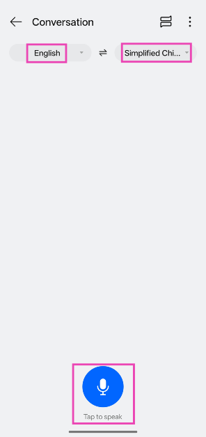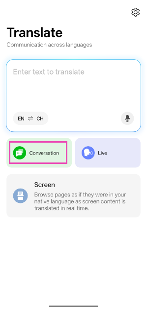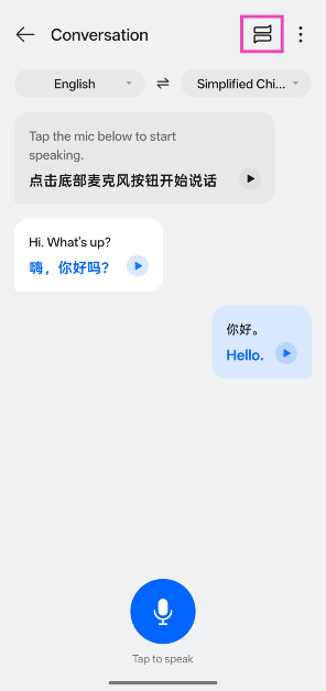 对话:如果您需要帮助翻译您所说的内容并将其转发给其他人,请使用此模式。该应用程序可以识别两个说话者,并无缝翻译他们彼此所说的内容。您无需每次需要翻译时都切换语言。