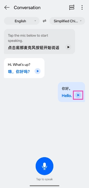 第7步:一旦他们停止说话,请按播放图标在翻译后的消息旁边收听它。