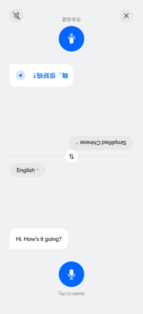第9步:将手机向下移动,以便听众可以看到显示屏。您的留言将是翻译的并展示给听众。您无需翻转手机即可让他们看到。同样,他们的回复将被翻译并显示在您的屏幕上。