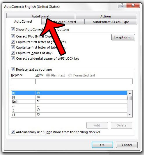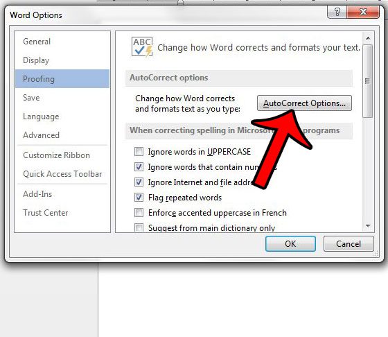 第 5 步:单击自动更正选项按钮位于窗口顶部。