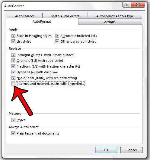 幸运的是,您可以调整 Word 2013 中的自动超链接,下面的指南将向您展示要修改的设置,以便 Word 2013 停止为网页和电子邮件地址创建自动链接。