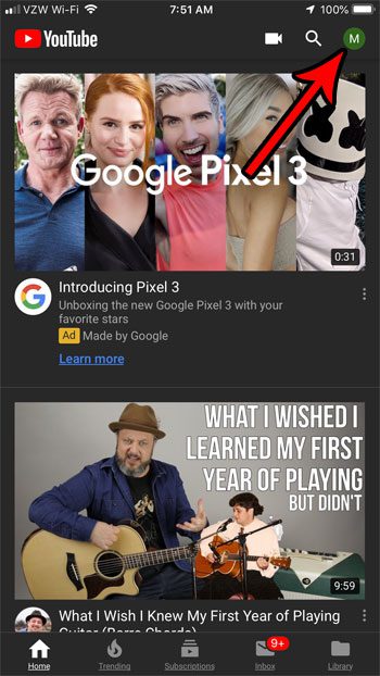 第 2 步:触摸屏幕右上角的个人资料图标。