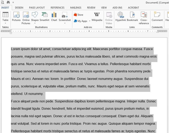 本教程假设您的 Word 2013 副本中的默认行距设置为双倍行距,并且您希望将其更改为单倍行距。