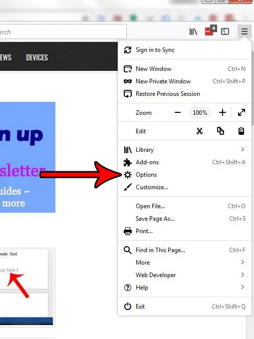 本文中的步骤将向您展示如何关闭 Firefox 选项菜单中的设置,该设置会导致当您在打开多个选项卡时尝试关闭浏览器时 Firefox 显示弹出窗口。