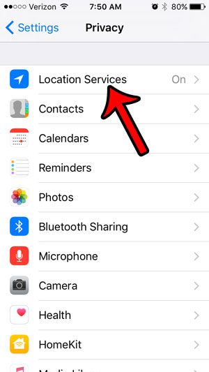 第 3 步:点击定位服务按钮位于屏幕顶部。