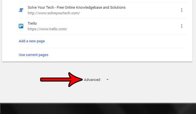 第 4 步:滚动到菜单底部,然后单击先进的选项。