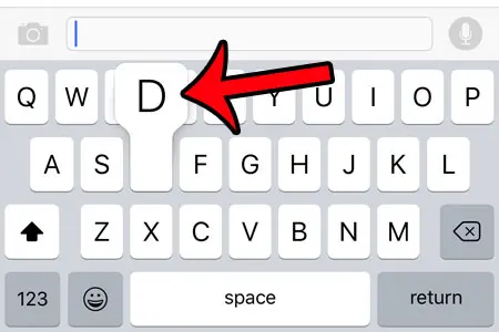 作为参考,我们将禁用的选项如下图所示,当您触摸键盘上的字母时,该字母会被放大。下图中正在输入字母“D”。