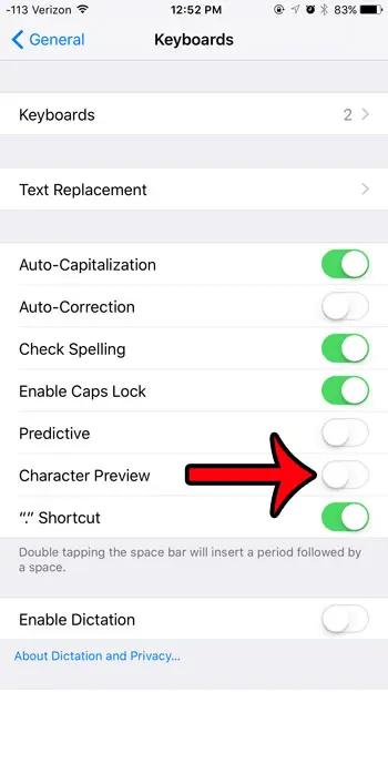 但是,一旦您选择在 iPhone 上安装 iOS 9 更新,您的 iPhone 键盘设置中就会有一个用于字符预览的新选项,允许您禁用该功能。我们下面的教程将向您展示在哪里可以找到此菜单,以便您最终可以将其关闭。
