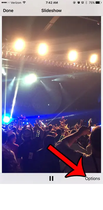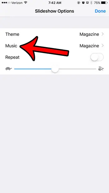 一种方法是使用 iPhone 侧面的音量按钮调低音量,但幻灯片内还有一个控件可用于禁用音乐。我们将在下面的步骤中向您展示如何执行此操作。