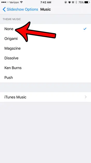 第 7 步:选择没有任何屏幕顶部的选项。请注意,您可以使用此方法来选择不同类型的音乐,或者您甚至可以点击iTunes音乐选项来选择您创建的播放列表。