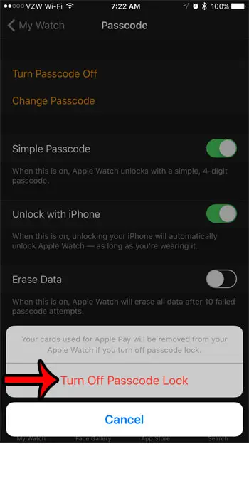 我们的文章在下面继续提供有关如何关闭 Apple Watch 上的密码的更多信息,包括这些步骤的图片。我们还提供了直接从手表关闭密码的步骤。