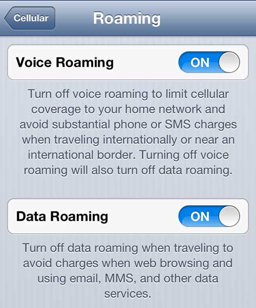 幸运的是,默认情况下,您的 iPhone 已配置为在漫游时不使用数据。