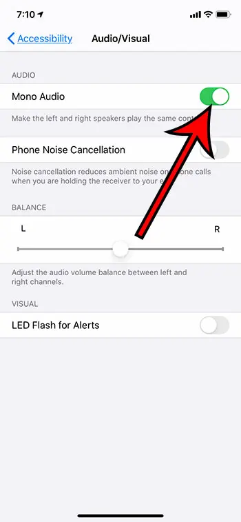 我在上图中启用了单声道音频。现在您已经知道如何打开单声道音频 iPhone 11 设置,您可以调整此菜单上看到的一些其他项目,例如: