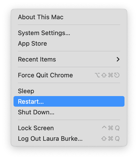 最后,要在 Mac 上完成 AdGuard 卸载,请从 Apple 主菜单快速重新启动您的设备。如果 AdGuard 正在应用 DNS 过滤器,这将清除所有延迟进程并重置您的网络堆栈。