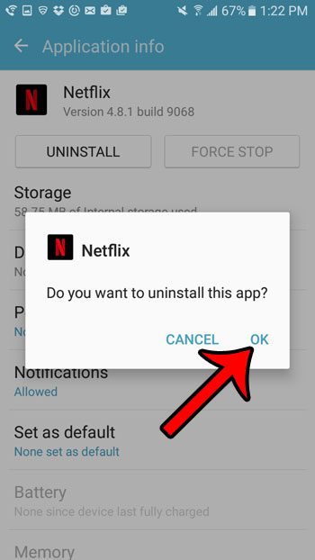 第 7 步:点击好的按钮以确认您要卸载该应用程序。