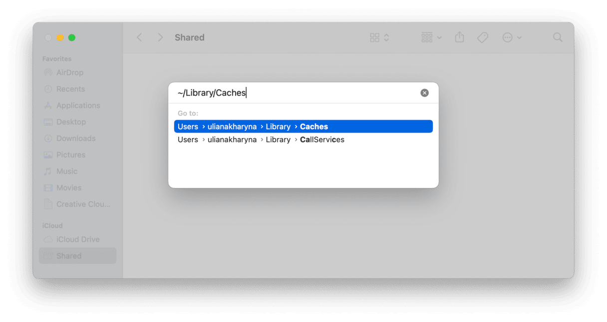 - 将此路径粘贴到“转到文件夹”框中,并在其后添加“返回”:/Users/Shared/