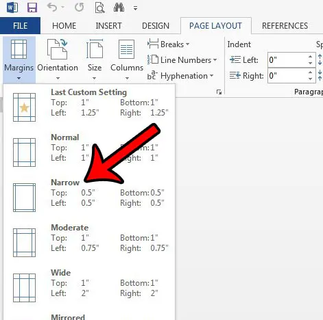 以下是如何在 Word 2013 中默认使用窄页边距 –