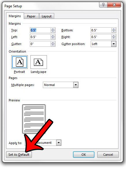 第 5 步:单击设置为默认值按钮位于底部页面设置窗户。