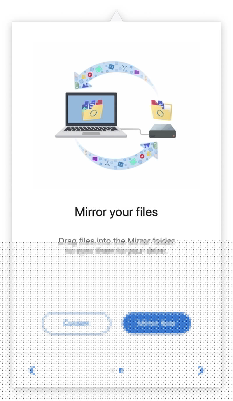 安装后,该应用程序将在您的菜单栏中运行,等待您进行配置。立即镜像将镜像文件夹放置在默认位置(您的主文件夹)。风俗允许您选择镜像文件夹的位置。