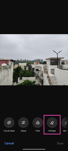 打开图像,点击“编辑”,点击“人工智能橡皮擦”,选择一个选择工具,然后突出显示该对象。 AI 工具将在几秒钟内从图片中删除该对象。