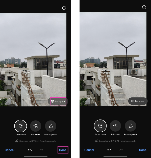 Oppo 上的 AI Eraser 使用外部服务器进行计算,因此在没有互联网连接的情况下无法运行。