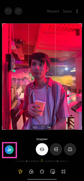 如果您的智能手机支持 Galaxy AI,请打开要编辑的图片,点击屏幕底部的铅笔图标,然后点击带有星星的蓝色图标以访问生成编辑功能。