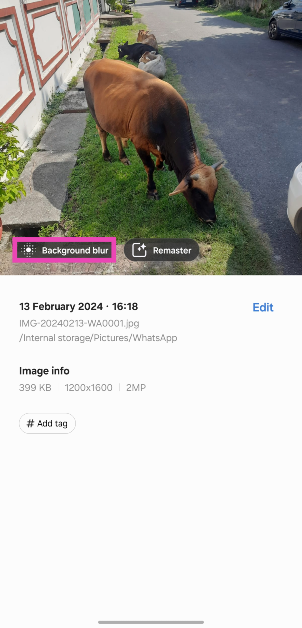 Galaxy AI 还可以提供有用的编辑建议来美化您的照片。对于您选择的每张图片,它都会提出相关的建议。如果您选择特写图片,编辑器将帮助您为背景添加适当的模糊量。具有分散注意力的阴影和反射的图像也可以使用此工具进行修复。方法如下。