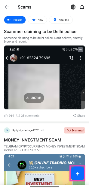 在 TrueCaller 的 Scamfeed 上创建帖子