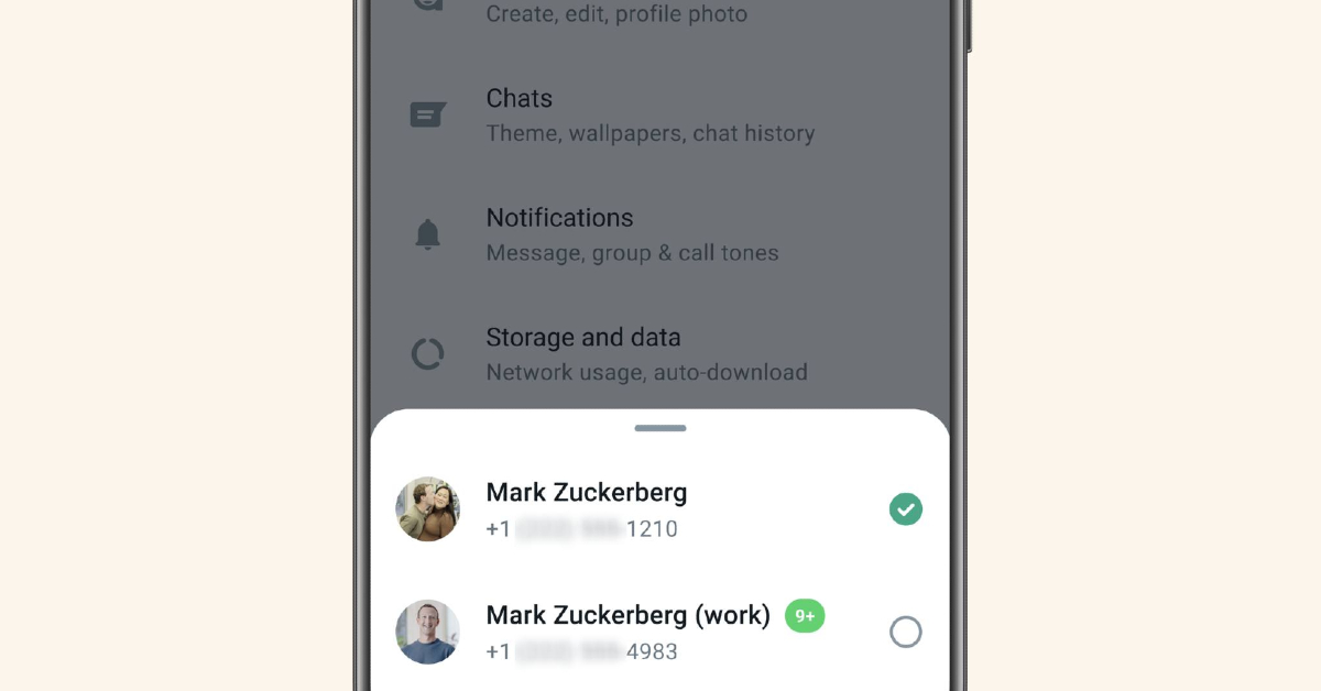 WhatsApp 的新多帐户功能允许您在设备上最多同时使用两个帐户。