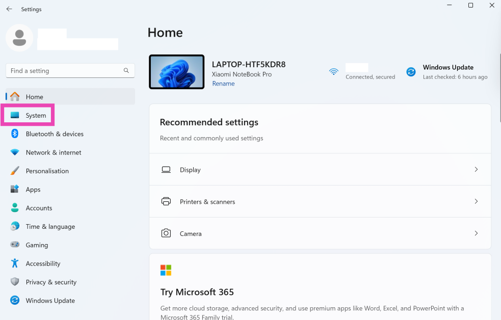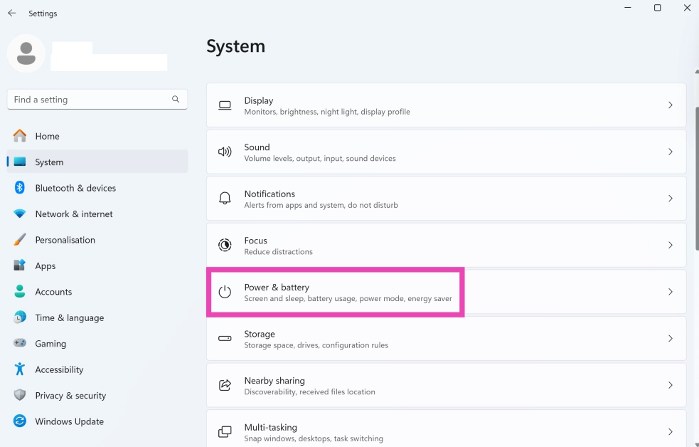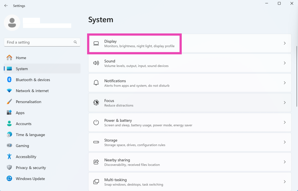步骤一:前往设置并选择系统从侧边栏。